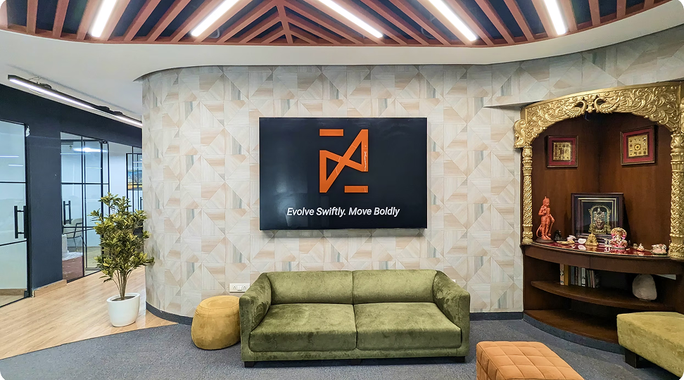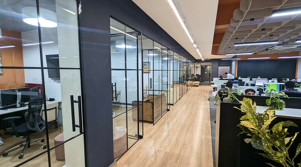 This workspace balances functional hierarchy with a transparent and inclusive environment. From collaborative zones to private cabins, every area is structured to encourage clarity and ease of interaction. A refined client lounge creates a comfortable and inviting experience for all visitors.